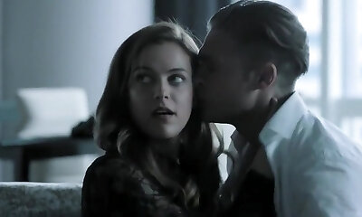 Brunette princess Rebecca fucks horny man in bed apartment