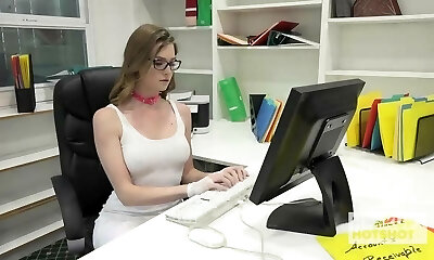 Sensual lesbian whore Denise Sky tempts her colleague in the office
