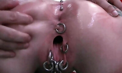 Two men knuckles in Hotkinkyjo ass at once. Rosebud & punching